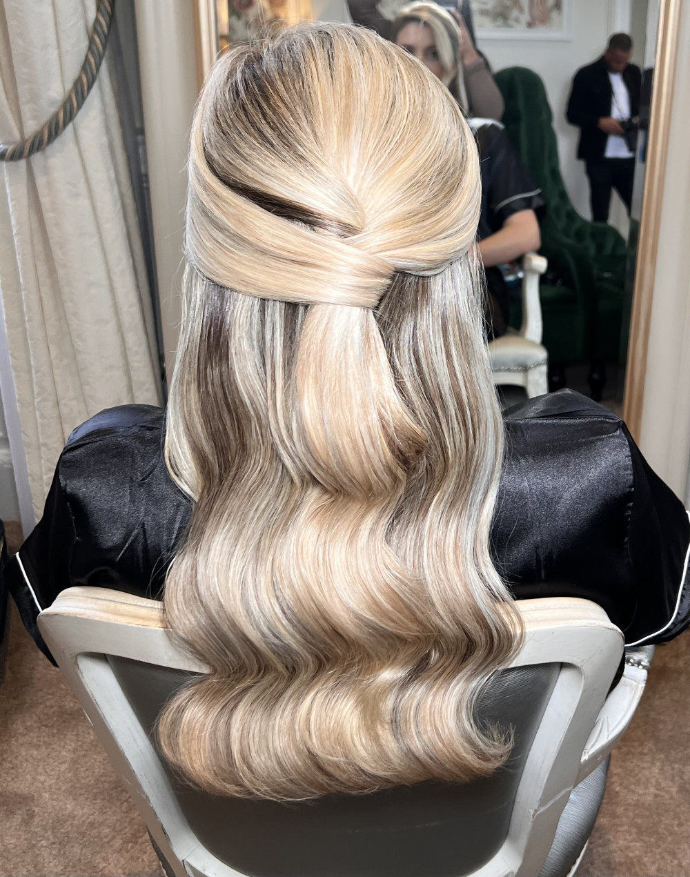 Photography by: By Rebecca Eve. #glamorous #blonde #bridesmaidhair #hollywoodwaves #halfuphalfdown